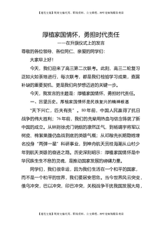 在升旗仪式上的发言:厚植家国情怀,勇担时代责任.doc