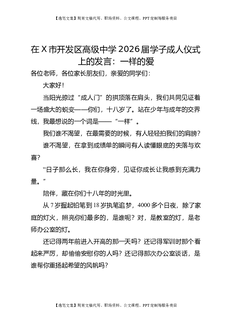 在X市开发区高级中学2026届学子成人仪式上的发言:一样的爱.doc
