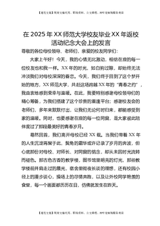 在2025年XX师范大学校友毕业XX年返校活动纪念大会上的发言.doc
