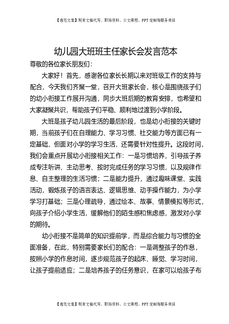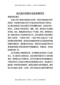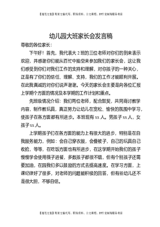 幼儿园大班班主任家长会发言范本.doc
