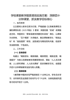 学校课堂教学提质增效实施方案:深耕四十分钟课堂,抓实教学目标核心.docx