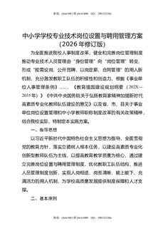 中小学学校专业技术岗位设置与聘用管理方案(2026年修订版).docx