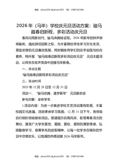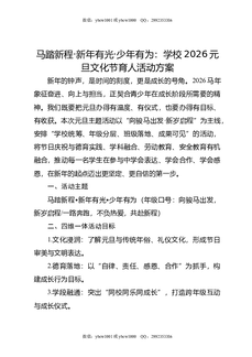 学校2026元旦文化节育人活动方案:马踏新程,新年有光,少年有为.doc