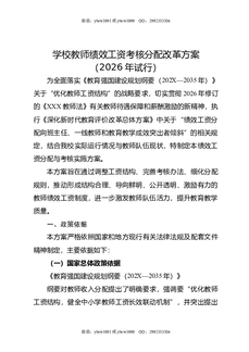 学校教师绩效工资考核分配改革方案(2026年试行).docx