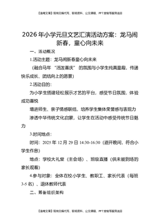 2026年小学元旦文艺汇演活动方案:龙马闹新春,童心向未来.docx