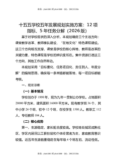 十五五学校五年发展规划实施方案:12项指标,5年任务分解(2026版).doc