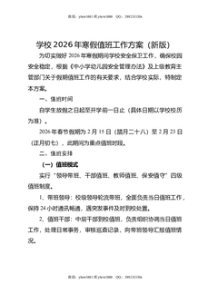 学校2026年寒假值班工作方案(新版).doc