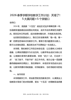 2026春季学期学校教学工作计划:天塌了!5大真问题,5个突破口.doc