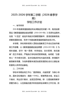 2025-2026学年第二学期(2026春季学期)学校工作计划.doc
