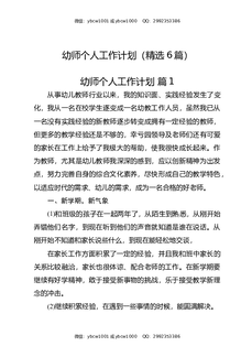 幼师个人工作计划(精选6篇).docx