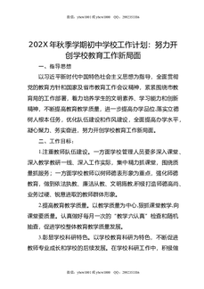202X年秋季学期初中学校工作计划:努力开创学校教育工作新局面.docx