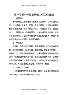 第一学期一年级上册班主任工作计划.docx