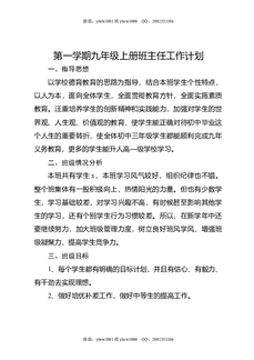 第一学期九年级上册班主任工作计划.docx