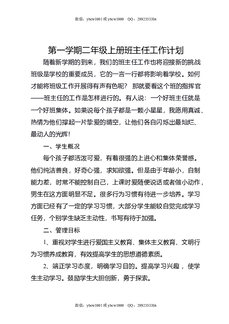 第一学期二年级上册班主任工作计划.docx
