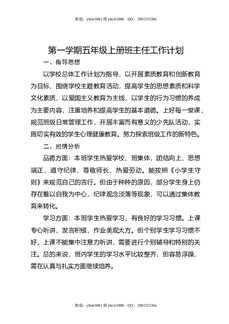 第一学期五年级上册班主任工作计划.docx