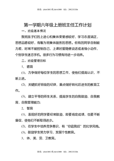第一学期六年级上册班主任工作计划.docx