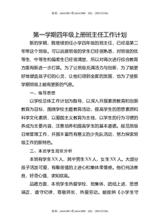 第一学期四年级上册班主任工作计划.docx