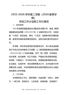 2025-2026学年第二学期(2026春季学期)学校工作计划附工作行事历.doc