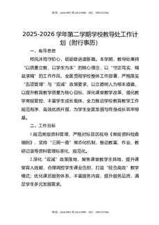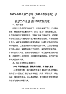 2025-2026第二学期(2026春季学期)学校教学工作计划(附详细工作安排).doc