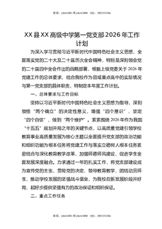XX县XX高级中学第一党支部2026年工作计划.doc