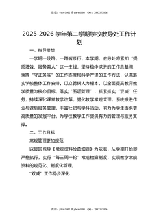 2025-2026学年第二学期学校教导处工作计划(附行事历).doc