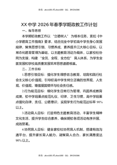 XX中学2026年春季学期政教工作计划.docx