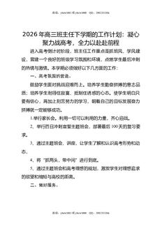 2026年高三班主任下学期的工作计划:凝心聚力战高考,全力以赴赴前程.doc