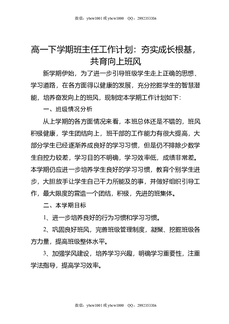高一下学期班主任工作计划:夯实成长根基,共育向上班风.doc