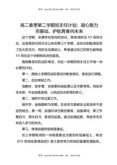 高二春季第二学期班主任计划:凝心聚力夯基础,护航青春向未来.doc