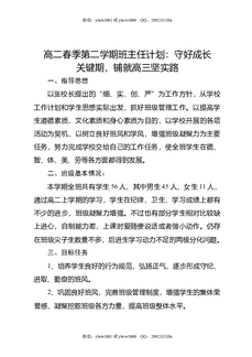 高二春季第二学期班主任计划:守好成长关键期,铺就高三坚实路.doc