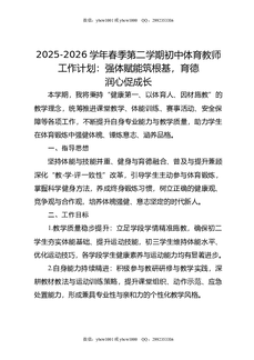 2025-2026学年春季第二学期初中体育教师工作计划:强体赋能筑根基,育德润心促成长.doc