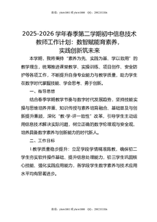 2025-2026学年春季第二学期初中信息技术教师工作计划:数智赋能育素养,实践创新筑未来.doc