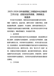 2025-2026学年春季第二学期初中化学教师工作计划:启智实验筑根基,深耕教法育素养.doc