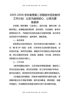 2025-2026学年春季第二学期初中历史教师工作计划:以史为鉴明初心,以育为要铸素养.doc