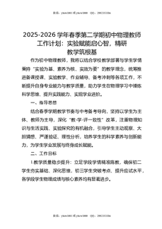 2025-2026学年春季第二学期初中物理教师工作计划:实验赋能启心智,精研教学筑根基.doc