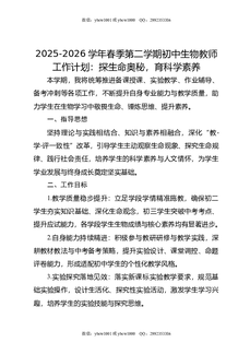 2025-2026学年春季第二学期初中生物教师工作计划:探生命奥秘,育科学素养.doc