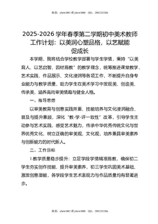 2025-2026学年春季第二学期初中美术教师工作计划:以美润心塑品格,以艺赋能促成长.doc