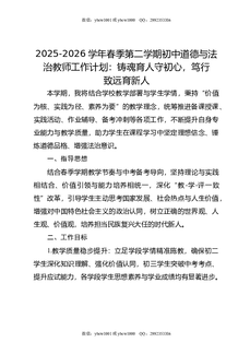 2025-2026学年春季第二学期初中道德与法治教师工作计划:铸魂育人守初心,笃行致远育新人.doc