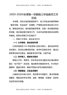 2025-2026秋季第一学期高三年级教师工作总结.doc