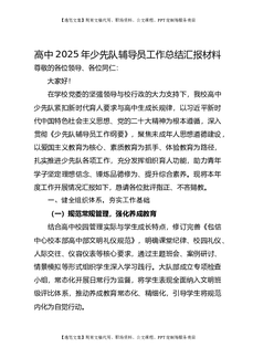 高中2025年度少先队辅导员工作总结汇报材料.doc