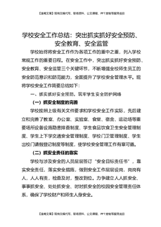 学校安全工作总结:突出抓实抓好安全预防、安全教育、安全监管.docx