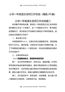 小学一年级语文老师工作总结(精选20篇).docx