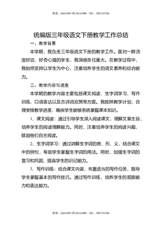 统编版三年级语文下册教学工作总结.docx