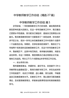 中学教师教学工作总结(精选27篇).docx