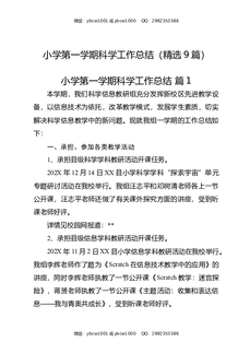 小学第一学期科学工作总结(精选9篇).docx