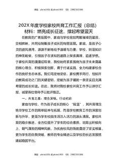 202X年度学校家校共育工作汇报(总结)材料:燃亮成长征途,撑起希望蓝天.docx