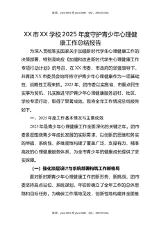 XX市XX学校2025年度守护青少年心理健康工作总结报告.doc