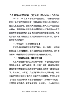 XX县第X中学第一党支部2025年工作总结.docx