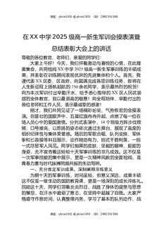 在XX中学2025级高一新生军训会操表演暨总结表彰大会上的讲话.docx