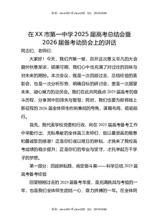 在XX市第一中学2025届高考总结会暨2026届备考动员会上的讲话.docx